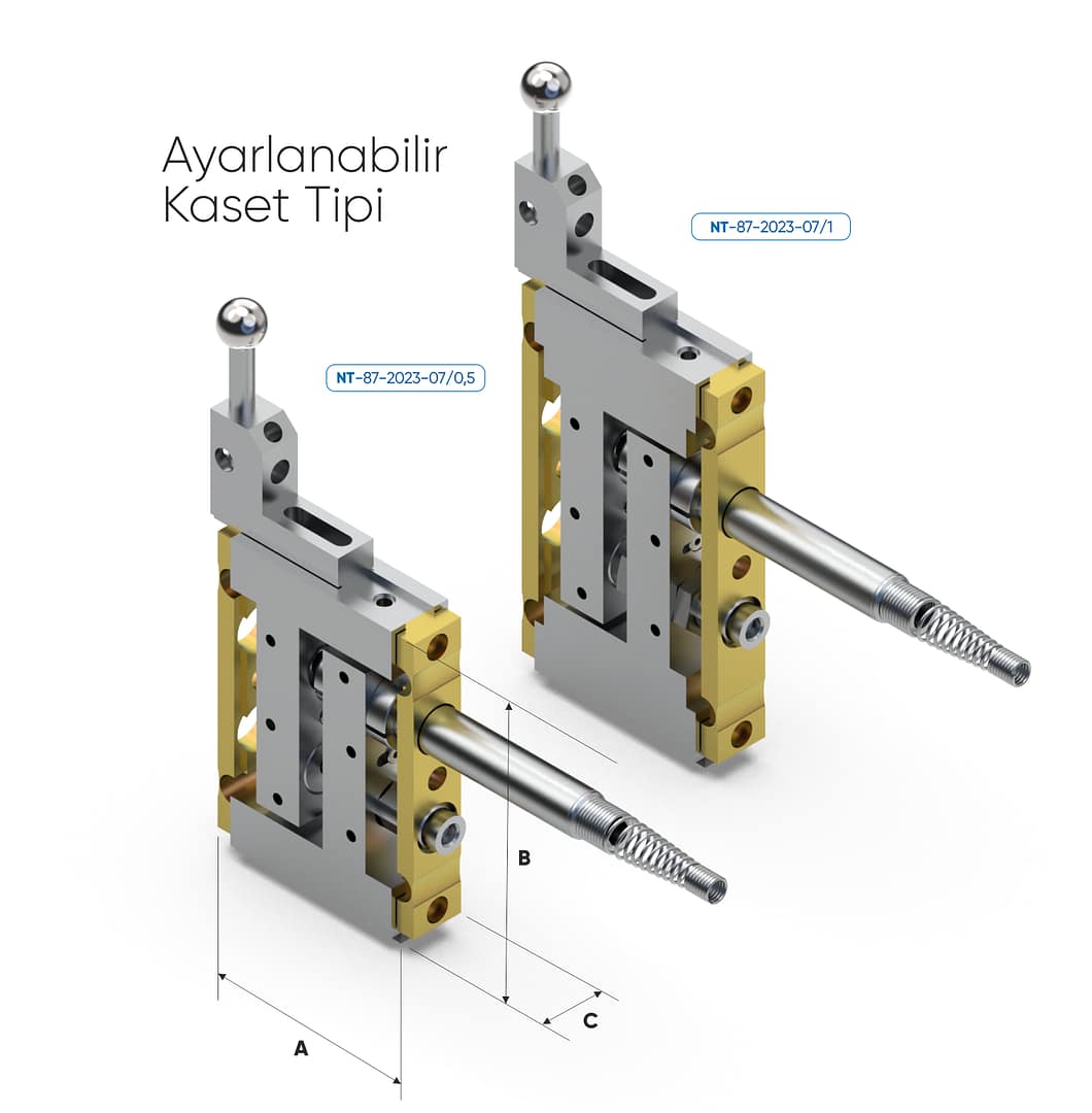 Kaset Tipi Prob bağlantı ekipmanları oldukça geniş kullanım alanına sahiptir. Dokunma probunun ayarlanabilir olması ve kompakt gövde yapısı sayesinde tüm uygulamalara kolayca adapte edilebilir. Pnomatik bağlantı adaptörü ile ileri geri hareketi kontrollü bir şekilde yapılabilir.